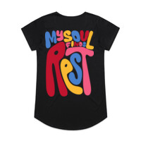 Self-fabric binding on neck, side seamed, double needle hems, preshrunk to minimise shrinkage